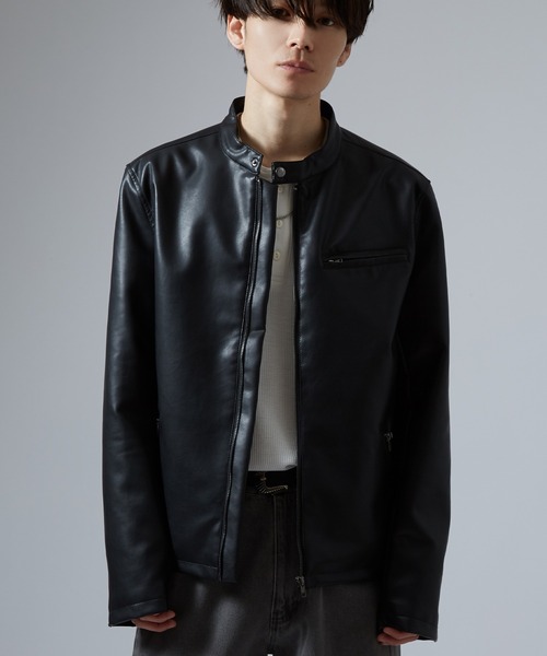 ミニマルなデザインが魅力のシングルライダースジャケット。 ●レザーのようなリアルなシボ感が魅力の合成皮革 ●首元はすっきりとしたスタンドカラーで、スナップボタンがアクセント ●フロントのジップポケットや胸元の斜めに入ったポケットなど、ライダースらしいディテール ●ライダースらしくタイトなシルエットでコーデを引き締めます ライダースジャケットの中でも比較的シンプルで合わせやすいシングルタイプで、 ハードになりすぎず、ロックやモード、ストリートやアメカジと幅広いスタイルにマッチ。 ワイドパンツやカーゴパンツと合わせてメリハリあるスタイルはもちろん スキニーパンツと合わせたパンクスタイルもおすすめ。