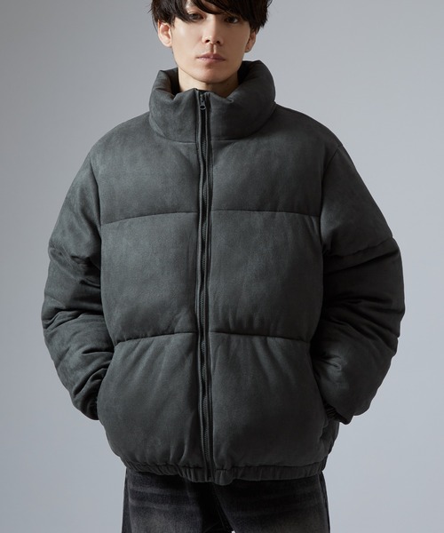 温かみのある素材感とトレンドのボリュームシルエットを組み合わせた、パデッドブルゾン。 ●落ち着いたマットな質感で、上品かつ大人っぽい印象のスエードタッチ素材 ●厚めの中綿と横のキルティングにより、存在感のあるオーバーサイズなシルエットを実現 ●首元はしっかりと立ち上がるハイネックデザインで、風の侵入を防ぎます ●袖口はリブ仕様で、保温性を高めています トレンド感のあるシルエットが今どきの中綿ダウンジャケットです。 シンプルなデザインでストリートはもちろん、大人カジュアルにもぴったり。 柔らかく暖かみのある素材感、優しいカラーリングははシーズンムードを高めます。 男性はもちろん、女性にも着ていただきたいユニセックスデザイン。