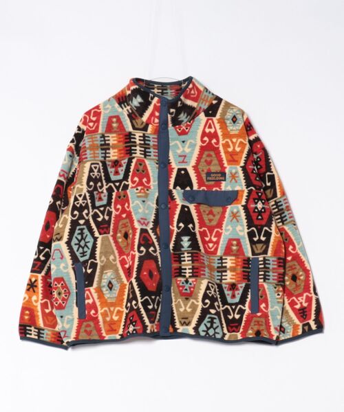 【 Amina×grn 】地球と遊ぶ、弾ける個性 暖かく軽量で普段使いにおすすめなフリースジャケット。 柔らかく着心地の良い素材感。 別名『カーペット・ベルト』とも呼ばれるシルクロードの伝統的な絨毯の柄からインスパイアされた、オリジナリティあふれる柄が魅力。 カジュアルに日常で活躍する、遊び心たっぷりなデザインです。 暗くなりがちな冬コーデを華やかにしてくれます。 ・左胸にフラップポケット付き。 ・両サイドポケット付き。 GOOD FIEELDING FIELD(野、山)+FEELING(気分)を組み合わせた造語。 自然に楽しめる、自然で楽しめる。そんな見た目とファンクション(機能)を目指したコラボレーションネームです。 Amina(アミナ) ~TRIBE PRIDE~ 個性って素晴らしい 世界の土地土地に生まれた多様な民族の美しさと、それぞれの文化に込められた人々の誇り。その活力に触れるとき、私たちの魂も踊り、笑顔があふれだす。胸を張った個性、弾ける非日常、内なるパワーをテーマに誇りある諸国太陽バザールを展開。 grn(ジーアールエヌ) 昔はファッションに夢中だった人でも、時間が経ち環境が変わると、だんだんおしゃれをすることを意識しなくなってしまうもの。そんな人達にファッションの楽しさを思い出してもらえるきっかけにgrnはなりたい。 ※こちらの商品は1点1点職人による手作りとなります。その為、生地の取り方により柄の配置や形・色合いなど若干個体差がございます。(画像は一例です。)あらかじめご了承ください。 ※屋外での撮影画像は、光の当たり具合で色味・カラーが違って見える場合がございます。商品のカラーは、スタジオ撮影の画像をご参照ください。 Amina Collection Co.,LTD.