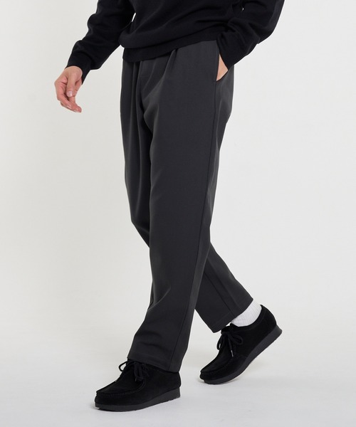 上品なリラックス感。ヘリンボーンイージータックパンツ■デザイン・シルエット・タック入りで腰まわりに程よいゆとりを持たせたリラックスシルエット・裾にかけてすっきりとしたテーパードラインで、きれいめな印象に・ウエストはドローコード付きで快適なフィット感■素材・上品なヘリンボーン柄で、シンプルながらも大人の雰囲気を演出・ストレッチの効いた素材で動きやすく、ストレスフリーな着用感・シーズンを通して使いやすい、程よい厚みの生地感■コーディネート・シャツやニットと合わせて上品カジュアルに・スウェットやパーカーと合わせて抜け感のある大人スタイルにも◎・スニーカーからレザーシューズまで幅広くマッチ伸縮性:ややあり透け感:なし裏地:なしポケット:あり生地感:厚手のヘリンボーン生地注意点:お洗濯方法によっては縮みや色あせの可能性あり。乾燥機等のご使用はお控え下さい。▼生地や素材の性質により2cm前後サイズ誤差が出る場合がございます。▼モデル着用写真は撮影環境により、多少実際のカラーと異なる場合がございます。▼色落ちの恐れがありますので、他のものと分けて洗って下さい。▼当商品は機械による生産の過程上、『生地を織る際の糸の継ぎ目』や多少の『ほつれ』、繊維の『混紡』、形やサイズに多少の『誤差』が生じる場合がございます。ボトムス パンツ タックパンツ テーパードパンツ イージーパンツ ウエストゴム ポケット ヘリンボーン ストレッチ シンプル 25aw コカ COCA coca COCA coca