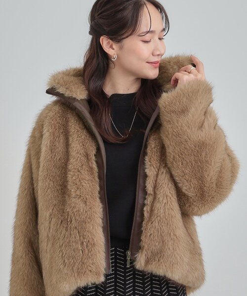 【デザイン】フェイクファーを使用したショート丈ブルゾン。スタンドカラーになっているので、ファスナーを閉めるとマフラーいらずの防寒デザインです。ゆったりシルエットなので、中に着るニットももたつかず、どんなボトムにも合わせやすい1枚です。今年らしいミックス調のカラーと、ブラウンの2色展開です。【スタイリング】短め丈なので、ワイドボトムやスカートなどに相性◎シンプルなデザインながら、1枚でもコーディネートのポイントになるので、いつものコーデに羽織るだけで今年らしいスタイリングにアップデートしてくれます!【素材】毛足の長めのフェイクファーを使用したブルゾンです。前たてには合皮素材のパイピングを施しフラットなデザインにポイントを加えています。256-24003と同じフェイクファーを使用しています。※照明の関係により、実際よりも色味が違って見える場合があります。また、パソコン・スマートフォンなどの環境により、若干製品と画像のカラーが異なる場合もございます。#CutieBlonde#Cutie#cutieblonde#cutie#キューティブロンド#キューティモデル情報:身長163cm B81 W59 H88 着用サイズ:00(FREE)店舗へのお問い合わせ商品番号:256-44010●製品寸法:00(FREE):着丈56cm B118cm 裄丈79cm備考:重量:00(FREE)約685g