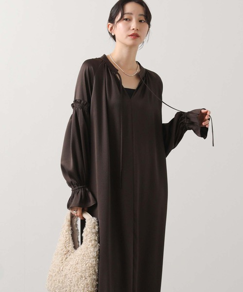 ハンマーサテン特有の上品な光沢が際立つ、キーネック×バンドカラーのワンピース。深みのあるトレンドのブラウンは、季節感を引き立てつつスタイルに品格をプラス。ギャザーパフスリーブは華やぎを添えながらも大人の落ち着きを演出。ファーベストを重ねれば、今季らしいモードな表情に仕上げてくれます。※商品画像は、光の当たり具合や使用しているパソコンのモニターやスマートフォン等の設定により、現物と画像の色味が若干異なる場合もございます。予めご了承ください。【 お買い物をもっと楽しんでいただく為に 】▼商品のお気に入り登録▼完売カラーの再入荷や、ラスト1点、セールの通知をお知らせします。割引クーポンの発行などお得な情報も!▼ブランドのお気に入り登録▼新商品や再入荷など、いち早くグレディブリリアンのお得な情報を受け取ることができます! 【Gready Brilliant】「ほどよい存在感」を大切にする大人の女性のためのセレクトショップ。