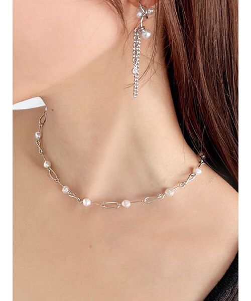 チェーンとニュアンスのあるバロックパールがを組み合わせたネックレス。適度なボリューム感とフォーマルとカジュアルどちらにもマッチし、どんなコーディネートにも溶け込むアイテムです。シンプルなデザインで、他のアイテムとのレイヤードスタイルもお楽しみいただけます。