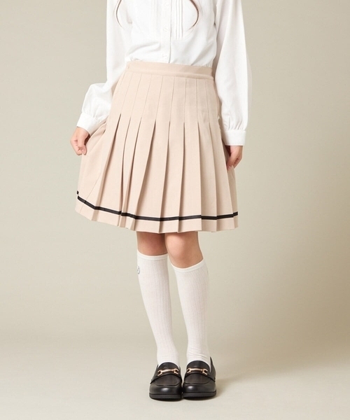 ◆シンプルだけど華やか!式典でも注目の一枚◆【デザイン】・プリーツデザインが上品できれい見え。 ・裾のラインがアクセント。 ・ウエストの後ろがゴムになっており、締めつけ感のない快適なはき心地。 ・卒服としてだけではなく、卒業式後もデイリーにも着まわせる。 ・卒業式や式典等のセレモニーシーンにも対応 。 ・左脇ファスナー開き。【素材】・適度にハリ感のある布帛素材【スタイリング】・配色セーラーカラージャケット(KQJBD04099)の衿の配色ラインと裾ラインがリンクして、写真映えする卒服コーデに。 ・ショートテーラードジャケットとのセットアップ風コーデもおすすめ ・ハイソックス合わせで清楚で上品なスタイルがおすすめ。 ・卒業式が終わればお出かけ着としても気軽に着回し可能。 ・足元はブーツやスニーカーなどで合わせてカジュアルダウンが今っぽくておすすめ!【カラー】・ベージュ…きちんと感、上品さがありながらも周りとちょっと差がつくベージュ ・ブラック…クールでトレンド感をプラスできるブラック----------------透け感:なし裏地:あり伸縮性:なし光沢感:なし生地の厚さ:普通----------------≪お気に入り登録機能の使い方≫■商品のお気に入り登録(ハートマークをクリック)再入荷通知や値下げ等、お得なご案内を受けることができます。 ※WEB・一部店舗限定販売です。----------------※サンプルでの撮影となるため、実際にお届けする商品と仕様やサイズが異なる場合がございます。※商品画像は、光の当たり具合やパソコンなどの閲覧環境により実際の色味と異なって見える場合がございます。 商品の色味の目安は商品単体の画像をご参照ください。