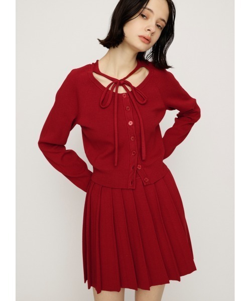 ■POINT ポイントになるリボンタイ付きの釦ニットトップスとプリーツミニスカートの嬉しい2Pセット。 ■DETAIL トップスはデコルテラインを綺麗に見せてくれる首元が着用するだけで女性らしい印象に。 お好みでリボン結びのアレンジを楽しんでいただけます。 スカートはプリーツディテールのミニスカート丈になっており、ロングブーツを合わせるだけで王道ガーリースタイルに。 ■STYLING セットアップはもちろん、それぞれ一枚でも様になり、デイリー使いしやすいアイテムなので様々なコーディネートで活躍するアイテムです。 ■FABRIC/MATERIAL 程よい肉感のレーヨン混ニット素材を使用。 ■透け感:なし ■光沢感:なし ■伸縮性:なし ■裏 地:なし ・洗濯機表示の場合はネットに入れて弱水流で洗って下さい。 ・手洗いの場合はもみ洗いを避けて軽く押し洗いして下さい。 ・洗濯後は、速やかに形を整え干して下さい。 ・丈の長い製品、袖など伸びやすい箇所はハンガーで支えたり、平干しをすることで型崩れを防止できます。 ?本品は素材の特性上色落ちします。 洗濯、クリーニング、着用(使用)時に他の衣類や雑貨、家具類に色移りする事があります。 特に汗や雨等で湿った状態では、色落ちが顕著になります。 白、淡色との組み合わせは避け、お取り扱いには十分ご注意下さい。 [注意事項] ※画像の商品はサンプルです。実際の商品と仕様、加工が若干異なる場合があります。 ※画像の商品は光の照射や角度、お使いのモニター環境により、実物と色味が異なる場合がございます。 ※着用、お取り扱いの際は、アテンションタグをご確認ください。 ※一部予約商品につきましては生産上の都合によりお届け予定日や店頭発売と前後する場合もございます。 ※追加生産商品は、一部の店舗、通販で販売中の場合がございます。予めご了承下さい。 【SLY/スライ】 「Casual」「Girly」「Mode」をベースに発信する、ディテールへのこだわりが詰まった、どこか必ず女性らしさを感じるアーバンスタイル。 さまざまなエッセンスをミックスした、時代の空気を体現するコレクションを展開。 ▼商品のお気に入り登録 お気に入りアイテムの値下げ・再入荷・在庫5点などの通知を受け取ることができます。 ▼ブランドのお気に入り 登録新商品や再入荷、セール、クーポン配布などお得な情報を受け取ることができます。 ※こちらの商品はSLY独自の採寸方法となっています。本サイトのサイズガイドと採寸方法が異なる場合がありますのでご了承ください。