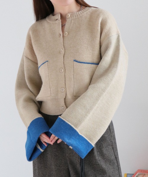 cepoスタッフがこぞって手に取る、大人可愛さバツグンのニットカーディガン♪袖の折り返したときのカラーが着映えポイントです◎◇Point◇ふんわりと柔らかく、毛足のある表情が特徴のアルパカタッチ素材を使用。袖の裏面にはビビットなカラー配色を施しており、着るだけでおしゃれ見え間違いなしの1着です。カラー配色は袖全体に入っているので2~3回折り返してもOK。リブを省いたボリュームのある袖も大人可愛いポイントです♪さらに大きめポケットにも配色アクセントを施し、さりげないアクセントに◎。鮮やかなカラーが入ることで抜け感を演出してくれるので、生地の程よい厚みも相まって春秋冬とロングシーズンで着用いただけます。ブラウス・ロンT・デニムシャツなど様々なレイヤードコーデに対応!◇Material◇アクリル×ポリエステル×ナイロンの混紡素材。ナイロンポリを含ませることで軽さとシワの回復力を高めています。ややオーバーサイズな作りですが、着丈をショートにすることでボトムとのバランスが取りやすくなっています。袖を折り返しての着用が前提の作りなので、袖丈は長めにしています。※手洗い可能。◇Coordinate◇もちろん1枚でも可愛く着こなせます!シャツやロンTと合わせてカジュアルにも◎スタッフおすすめはこちらのニット、デニム、インにはブラウス!大人モードな着こなしが叶います。1枚あれば大活躍間違いなしの着回しニット。かわいすぎる1枚!色んなボトムスと合わせておしゃれに着回して♪※照明や天候により実際の色味と異なって見える場合がございます。ご了承くださいませ【キーワード】#Y2K#20代#30代#40代#50代#抜け感#レイヤード#配色#ニット#大人可愛い#羽織