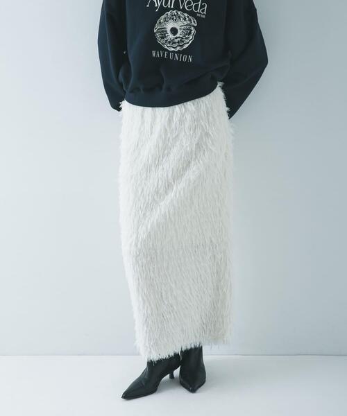 単調になりがちな冬のコーディネートに映える、フリンジジャガードスカート。 表情豊かなフリンジが、シンプルな着こなしに華やかさとトレンド感をプラスします。 ストレッチ性のある裏地が付いているので動きやすく、ウエストはオールゴム仕様でリラックス感のある穿き心地。ストレスなく快適におしゃれを楽しめます。 シンプルなニットやスウェットと合わせるだけで、華やかなトレンドスタイルが完成。ブーツを合わせるとより季節感のある着こなしに。ジャケットやシャツと合わせれば、モード感のあるスタイルも楽しめます。 POINT ・フリンジジャガード素材で存在感抜群 ・ストレッチ裏地&ウエストオールゴムで快適な穿き心地 ・冬の着こなしを格上げする着映えアイテム 【2025 Autumn/Winter】【25AW】 ※毛足の長い素材は、通常の着用により、毛羽が乱れたり他の物へ付着することがあります。 ※毛羽の乱れは、衣類用ブラシでブラッシングして整えてください。 ※その他お取り扱いに関しましては、商品に付属のアテンションタグをご覧ください。 ※商品画像は、光の当たり具合やパソコンなどの閲覧環境により、実際の色味と異なって見える場合がございます。予めご了承ください。 ※商品の色味の目安は、商品単体の画像をご参照ください。 ▼お気に入り登録のおすすめ▼ お気に入り登録された商品は、マイページにて現在の価格情報や在庫状況の確認が可能です。 お買い物リストの管理にぜひご利用ください。 素材感 透け感 : なし 伸縮性 : ややあり 裏地 : あり 光沢 : なし ポケット : なし BLACK:162cm(38) / 166cm(38) / 152cm(36) 3638