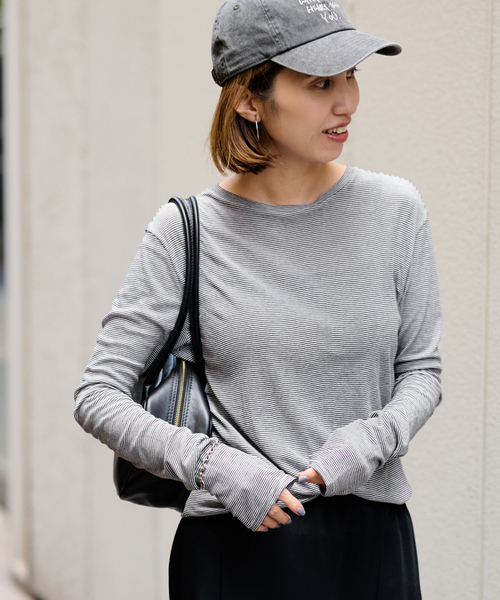 ◆大人気シアーカットソーが再入荷!・旧品番25070220703030の追加品番です。・同一商品でも個体差が生じるため、採寸内容に若干の差が生じる場合がございます。大人気!HTシアーロングTeeのNEWバージョン!重ね着のしやすさはそのままに、袖丈を長めに設定。シアーながらも伸縮性に優れた重宝するカットソー。繊細な細番手の糸で編み上げたシアーフライスで、キックバックがあり型崩れしづらいのが嬉しいポイントです。程よく身体にフィットするサイズ感が魅力で、インナーとしてはもちろん、一枚着でシアー感を楽しむ着こなしもおすすめです。長めの袖に仕上げているので、シャツやスウェット、ニットの袖からチラ見せするレイヤードスタイルにも最適◎**********************透け感:あり裏地:なし伸縮性:あり光沢感:なし生地の厚さ:薄手**********************※取り扱いについては、商品についている品質表示でご確認ください。※こちらの商品は、FRAMeWORK での取り扱いになります。直接店舗へお問い合わせの際は FRAMeWORK 店舗へお願い致します。※照明の関係により、実際よりも色味が違って見える場合があります。またパソコン・スマートフォンなどの環境により、若干製品と画像のカラーが異なる場合もございます。予めご了承の上ご注文ください。※商品の色味は、商品アップ画像をご参照ください。本体:手洗い可能