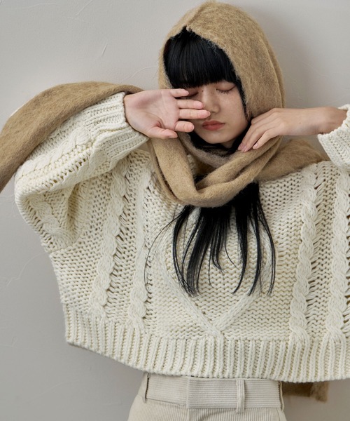 モヘアタッチの柔らかな起毛糸で仕立てたフード付きマフラー。 スタイリングに鮮度をもたらしてくれる、服のような小物アイテム。です。 首元をすっぽり覆うマフラー部分と頭を覆うフード部分があり、スタイリングのアクセントにもなります。 被る、マフラーとして垂らすだけでなくリボンを作ってみたりとマルチWAYで楽しめる、 着こなしに物足りなさを感じた時にアクセ感覚でプラスしたいアイテムです。 差し色になるカラー展開で見慣れたコーデの印象を変えるとともに、ふんわりとしたニット素材でシーズンムードも高まります。 etoll. 「For me.」 気ままに自由な服選びで、私だけのファッションを楽しむ女性へ捧げるセレクトショップ。 系統に捉われず、気分を高めたい日や特別な日、 いつでも私の好きを身につけましょう。 自分自身のためにお洒落をしたい気持ちを大切に、 豊かな個性とトレンドを取り入れたアイテムで、少しだけお手本になるようなスタイリングを提案します。 【備考】 ・伸縮性あり ・手洗い可