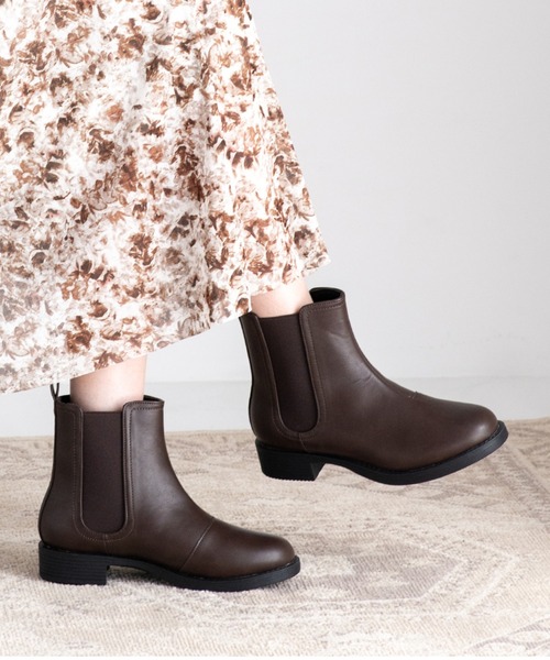 定番人気のすっきりシルエットのサイドゴアブーツ。トレンドに左右されないすっきりとしたラウンドトゥ+程よいボリュームのソールがポイント。ショート丈はボトムの丈を選ばず、どんなスタイリングにもマッチする1足。※撮影は室内で行われており、ライティングにより実物と色味が少し異なる場合がございます。