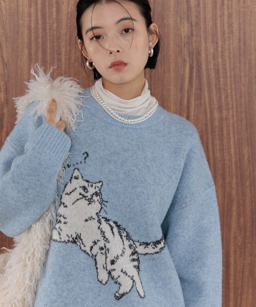 昨年も好評でしたキャッチーなネコ柄ニットが今年も登場!ーーー★おすすめポイント★[1]ふわふわとした起毛感のある軽く柔らかな素材[2]今季はネコ柄にロゴをプラス[3]シンプルシルエット[4]子供っぽくならず大人が着用できるアニマルニット[5]お家で洗濯可能ーーー[fabric]軽く柔らかな風合いが特徴の微ストレッチ糸素材を使用。ふわふわとした起毛感が柄と相性の良い素材。[design]キャッチーなネコ柄が目を引く、ネコ柄ジャガードニット。イラストテイストのちょっと抜け感のあるクスッと笑える絵のタッチがポイント。今季はポーズも様々なアソート柄にロゴをプラス。子供っぽくならずに大人女性が楽しめるアイテム。[styling]柄を活かしシルエットはシンプルなのでボトムスを選ぶことなくスタイリングが楽しめるアイテム。インナーを仕込んでも◎※屋外での撮影画像は光の加減で実際の商品より明るく見えたり、風合いが異なって見える場合がございます。 商品の色味はスタジオ撮影の画像を参考にして下さい。-------------------------------------≪お買い物をよりお楽しみいただくために≫◆商品のお気に入り登録(ハートマークをクリック)完売カラーの再入荷通知や、完売間近の通知、セールの通知も受けることができます。◆ブランドのお気に入り登録新商品や再入荷など、いち早くブランドのお得な情報を受け取ることができます。-------------------------------------