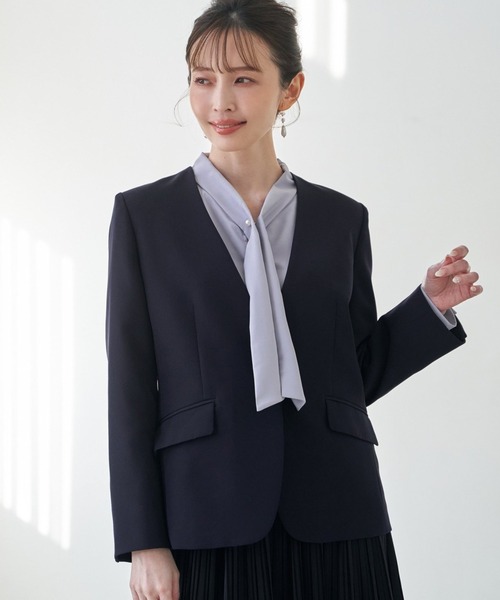 通勤もセレモニーもスマートにこなせるウォッシャブルVネックジャケット。2WAYストレッチ素材を使用しているので、座ったり立ったりの動きも軽やかで快適。自宅で洗えるウォッシャブル仕様だから、日常使いも特別な日も清潔感をキープできます。【素材】微光沢とハリ感のあるポリエステル。ストレッチあり。【デザイン】汎用性の高いVネックで、普段使いもしやすいデザインです。【ikkaポイント】・毎日の通勤の洗い替えに最適なマシンウォッシャブル仕様・2WAYストレッチで動きやすく移動の多い日でも余裕・サイズ感を改良し、ウエストが高く見えるようにシルエットを変更【おすすめコーディネート】同素材、別売りのパンツとセットアップでのご着用がおすすめ。・ウォッシャブルワイドパンツ 品番 51520019・ウォッシャブルテーパードパンツ 品番 51540033マシンウォッシャブル