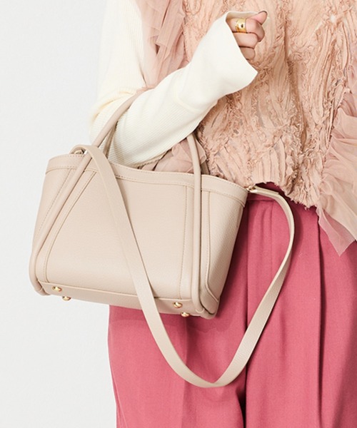チューブストラップとトリミングデザインの立体感が女性らしい雰囲気のハンドバッグ。ファスナーポーチは取り外し可能なので入れる物に合わせて使い分けでき、マチをしっかりつけることで見た目以上に収納力がある優秀アイテム。 付属のストラップを付けショルダーバッグとしても使用できるのも嬉しいポイント。 ★《お気に入り登録》でお得な情報をGET★ ・「商品のお気に入り登録」で再入荷通知やラスト1の通知、セールやクーポンの通知も受け取ることができます!→ハートマークをクリック ・「ブランドのお気に入り登録」で新商品や再入荷など、お得な情報を受け取ることができます!