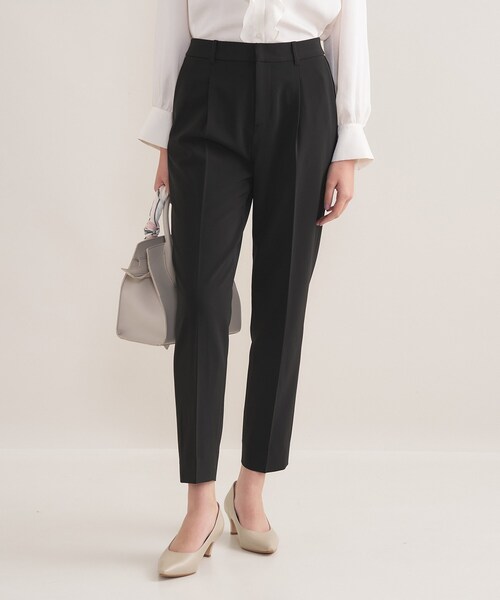 【デザインポイント】 素材をアップデートし新しくなったINDIVI定番のタックテーパードパンツです。 クリーンでスタイリッシュな細身のラインで身体にフィットしすぎないので、ストンと落ちてきれいなシルエットで安心して着用いただけます。 裾を細くお作りしているので美脚効果が期待できる一品です。 ストレッチ性の高い素材を使用しているので快適な着用感です。 【スタイリングポイント】 同素材のジャケットと合わせたセットアップスタイルは、キレイめできちんと感があるので、通勤用や学校行事等幅広く活躍します。 センタープレス入りの細身のラインなので、単品としてニットやブラウスと合わせていただくと、すっきりとシャープにバランス良く決まります。 【SETUPアイテム】 ノーカラージャケット:127-41045 テーラードカラージャケット:127-41046 テーパードパンツ:127-61045 ワイドパンツ:127-61047 スカート:127-71045 【素材ポイント】 高いストレッチ性を持った快適な着心地が特徴のツイル素材になります。 長時間の移動や座り仕事でもシワになりにくく、更にウォッシャブル可能なので、洗濯後のシワも気になりにくい、マシンウォッシャブル・UVケア性を兼ね備えた素材になっております。 【仕様】 ・ポケット数:横×2 後ろ×2 ・前ファスナー ・ウエスト後ろゴム ・裏地あり ※この製品は、太陽光線中の紫外線(UV)を通しにくくします。この効果は永久的ではありません。 ※照明の関係により、実際よりも色味が違って見える場合があります。また、パソコン・スマートフォンなどの環境により、若干製品と画像のカラーが異なる場合もございます。 モデル情報:身長167cm B79 W59 H87 着用サイズ:38(M) 店舗へのお問い合わせ商品番号:127-61045 ●製品寸法: 03(XXXS):W58cm H89cm 股下59cm 前股上26cm 渡り幅28cm 裾幅14cm 05(XXS):W61cm H92cm 股下60cm 前股上26cm 渡り幅29cm 裾幅15cm 12(LL):W75cm H105cm 股下67cm 前股上29cm 渡り幅34cm 裾幅17cm 13(LL):W79cm H109cm 股下67cm 前股上29cm 渡り幅35cm 裾幅18cm 15(3L):W83cm H113cm 股下67cm 前股上29cm 渡り幅36cm 裾幅18cm 19(5L):W91cm H121cm 股下67cm 前股上31cm 渡り幅39cm 裾幅19cm 34(S):W63cm H93cm 股下66cm 前股上27cm 渡り幅29cm 裾幅15cm 36(S):W66cm H96cm 股下66cm 前股上27cm 渡り幅30cm 裾幅15cm 38(M):W69cm H99cm 股下67cm 前股上27cm 渡り幅31cm 裾幅16cm 40(L):W72cm H102cm 股下68cm 前股上28cm 渡り幅32cm 裾幅16cm 42(L):W75cm H105cm 股下68cm 前股上28cm 渡り幅33cm 裾幅17cm 備考: