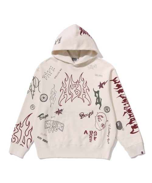 裏起毛を使用したプルオーバーフーディ。全体に様々なロゴをプリントしたデザイン。リラックスフィットシルエットなのでゆったりとしたサイズ感で着用いただけます。