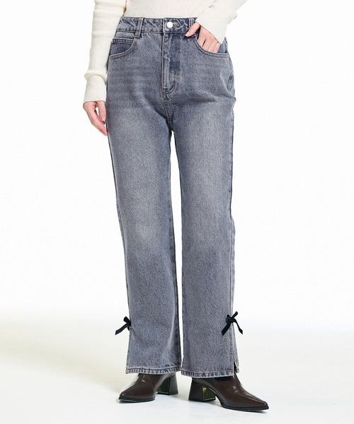 さりげない可愛さをプラス。ベロアリボンデニム■デザイン・シルエット裾にあしらったベロアリボンが上品なアクセント。スリット入りのストレートシルエットで脚長効果も◎シンプルながら、細部にこだわったフェミニンデザイン。■素材柔らかさと適度なハリを兼ね備えたデニム素材を使用。ベロアリボンがシーズンムードを高め、デイリーにも特別感をプラスしてくれる仕上がり。■コーディネートクロップド丈のトップスやニットを合わせてバランスよく。フェミニンにもカジュアルにも馴染む万能アイテム。足元はブーツやパンプスでスリットを引き立てて。伸縮性:なし透け感:なし裏地:なしポケット:あり生地感:柔らかいデニム生地注意点:素材の特性上、色落ちが避けられません。淡色系との組み合わせはご注意下さい。また、洗濯などにより色や風合いが変化します。必ず単独で洗濯して下さい。お洗濯方法によっては縮みや色あせの可能性あり。乾燥機等のご使用はお控え下さい。▼生地や素材の性質により2cm前後サイズ誤差が出る場合がございます。▼モデル着用写真は撮影環境により、多少実際のカラーと異なる場合がございます。▼色落ちの恐れがありますので、他のものと分けて洗って下さい。▼当商品は機械による生産の過程上、『生地を織る際の糸の継ぎ目』や多少の『ほつれ』、繊維の『混紡』、形やサイズに多少の『誤差』が生じる場合がございます。ボトムス デニム ロングパンツ リボン ベロア 裾スリット 長ズボン ジーンズ ジーパン ポケット カジュアル きれいめ 25aw コカ COCA coca COCA coca