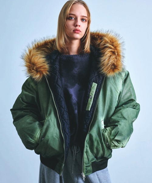 Revo. SELECTこなれたヴィンテージ感のある雰囲気が魅力のフードブルゾン丈夫なナイロン生地に今季トレンドのフェード加工を施し、古着のようなこなれた表情が魅力のボンバージャケット。中綿入りで保温性が高く身体を優しく包み込む快適な着心地に。Y2Kを意識したショート丈のワイドシルエットが、スタイリングに今っぽい遊び心を与えてくれます。襟部分はファー仕様で脱着可能なので、2WAY仕様で着用可能。ブラック、グレー、カーキの3色展開。スラックス、革靴などと合わせてアダルトな雰囲気に、ダメージデニムパンツやカーゴパンツ、サイドラインパンツなどと合わせればトレンド感溢れるストリートコーデに仕上がります。・ヴィンテージ古着のようなかすれた加工が特徴・シンプルでありながら抜群の存在感・保温性とクッション性に優れた中綿入り・ワイドな身幅と着丈を短く設定した旬なシルエット・ゆったりめのサイジングでインナーも着込めるサイズ感・被っても様になるボリューミーなフード・左腕にシガーレットポケット・裾と袖のリブが風の侵入を防止・左右にハンドウォーマーポケットを完備・細身のスキニーパンツやワイドパンツとも相性バッチリ・春秋冬でロングシーズン使えて着回し可能・旬なグランジ系ストリートスタイルにも◎COORDINATEデニムやチノパンを合わせたカジュアルスタイルから、パラシュートワイドパンツやトラックパンツ、テックパンツと合わせたストリートスタイル、フレアパンツやスラックスなどと組み合わせた現代風なモードスタイルまで幅広く対応可能。インナーにロンTやスウェット、パーカー、ニットを合わせたレイヤードスタイルや、きれいめなジャケットやコート、セットアップスタイルと合わせたミックススタイルもGOOD。また、スタイルのアクセントとして、スマホショルダーやボディバッグ、巾着バッグ、バケットハット、サングラスなどの小物使いも◎。足元はスニーカーは勿論の事、ローファー、アンクルブーツ、レザーシューズなどの革靴で上品な雰囲気の合わせもGOOD。寒さが厳しいシーズンは、中間着にカーディガンやGジャン等を着用すれば、防寒性も高まり旬なレイヤードスタイルをお楽しみ頂けます。男性は勿論オーバーサイズコーデで女性にも、メンズ・レディース問わずユニセックスにお使い頂けます。=================================≪お気に入り登録≫がおススメ!▶商品のお気に入り登録(ハートマークをクリック)完売カラーの再入荷通知や、在庫ラスト1点の通知、セールの通知を受け取ることができます。▶ブランドのお気に入り登録新商品がUPされたり売り切れ商品が再入荷したときなど、いち早くブランドのお得な情報を受け取ることができます。=================================※撮影画像はサンプル品を使用しているため、実際の商品と仕様、加工、サイズが若干異なる場合がございます。また、可能な限り実物に近いカラーにて掲載していますが、使用しているパソコンのモニター設定や、携帯電話のメーカー・機種により実際のカラーと異なって見える場合がございます。予めご了承ください。