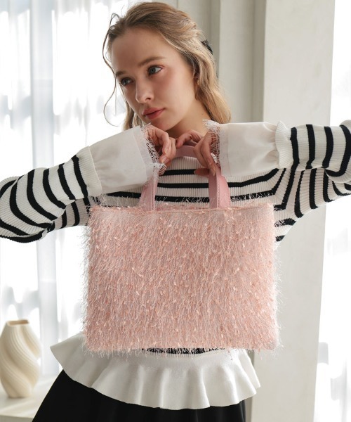 ■商品名Donobanトゥインクルトート■サイズ(cm)【OneSize】[本体]タテ 約25、ヨコ 約34、持ち手長さ 約34、持ち手立ち上がり 約13[ポーチ]タテ 約22.5、ヨコ 約28重量(g) 約170※平置き採寸のため若干のブレがございます。■カラーブラック、ホワイト、ライトグレー、ライトピンク■素材[表地]アクリル 100%[裏地、持ち手、巾着]ポリエステル 100%■仕様[内側]オープンポケットファスナー付きポケット■商品説明ちょうど良いサイズ感のバッグをオリジナルで作りたく、お友達と話している会話から巾着もセットで作ることになりました。素材感が愛らしいシャギー素材のトートバッグ。コンパクトですがA4サイズが入るので、メインバッグにもサブバッグとしてもオススメ。大人気のハートカットバッグと合わせて持つと、可愛い色味でコーディネートのポイントに。オフィスや学校などでのメインバッグとしてはもちろん、オケージョンシーンやお子様のおけいこバッグとしても使って頂けます。■モデル身長詳細は商品画像をご覧ください。■ご注意■入荷時期によりお色、長さが多少異なる場合がございます。■撮影場所やイメージにより実際の商品と色味が若干異なる場合がございます。商品のお色味はカラーバリエーション画像をご参照ください。■なるべくきれいな状態で発送致しますが、製造工程上、輸送の際の汚れや擦れ等が若干見られる場合がございます。■雨、摩擦により色落ちする場合がございます。あらかじめ上記事項をご理解ご了承のうえ、お買求めくださいませ。~*~*~*~*~*~*~*~*~*~*~*~*~*~*▼商品のお気に入り登録▼完売カラーの再入荷通知や、ラスト1点の通知、セールの通知も受け取ることができます。ぜひご登録ください♪▼ブランドのお気に入り登録▼新商品や再入荷など、ブランドのお得な情報をいち早くお知らせ!ぜひご登録ください♪
