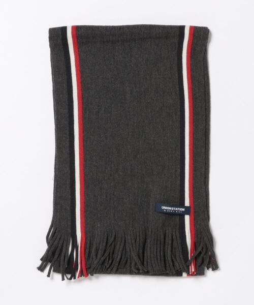 定番に、ひとさじの遊び心。トリコロールが映えるウール混マフラー。 【デザイン】・ウール50%、アクリル50%の混紡素材で、暖かさと扱いやすさを両立・グレーをベースに、ブラック・ホワイト・レッドのトリコロールラインを配置・主張しすぎない配色バランスで、さりげないアクセントをプラス・25cm×166cmの程よいサイズ感で、すっきりとした巻き心地・オンオフ問わず使える、シンプルながら表情のあるデザイン 【コーディネート提案】・無地のコートやブルゾンに合わせ、ラインを活かした洗練スタイルに・ジャケットやきれいめアウターと合わせ、大人のカジュアルダウンに・ニットやスウェットと合わせて、デイリーな冬コーデのアクセントとして・グレーやブラック基調のコーディネートに取り入れ、さりげない色差しに