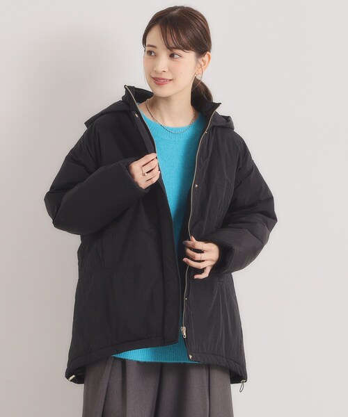 【デザイン】オーバーサイズがトレンド感あるモンスターパーカー。今っぽカジュアルコーデが作れます。適度なハリ感でシャカシャカとしたナイロン素材を使用。中綿入りで今時期から真冬までOKなアウターです。ビックシルエットで厚手のトップスでもバサッと羽織れる便利アイテム。スタンド衿にフード付きなので首周りの防寒対策も◎袖口は中側をリブ切替にしており、手元から冷たい風が入って来るのを防いでくれます。裾が絞れるようになっているので、シルエットの調整も可能。デイリー使いはもちろん、冬の旅行や年末年始のイベントシーンでも大活躍!【素材】シャカシャカとたナイロン素材で程よくハリ感のある素材を使用。【仕様】・ポケット数:横×2・裏地あり※照明の関係により、実際よりも色味が違って見える場合があります。また、パソコン・スマートフォンなどの環境により、若干製品と画像のカラーが異なる場合もございます。----------------------------------------★お気に入り登録がおすすめ★▽気になる商品はハートマークをクリック!・再入荷やセールの通知をお知らせ・お気に入り一覧からいつでもチェック▽ブランドのお気に入り登録も!・新商品やお得な情報をいち早くお知らせ----------------------------------------モデル情報:身長163cm B78 W57 H84 着用サイズ:00(フリーサイズ)店舗へのお問い合わせ商品番号:P93-44504●製品寸法:00(フリーサイズ):着丈73cm B124cm 袖丈50cm 肩幅52cm備考:重量:00(フリーサイズ)約775g