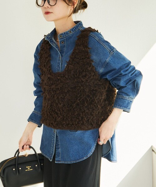 PUAL CE CIN 2025 AW collection 【Grace of Refined】控えめでありながら上品さをもったクワイエットラグジュアリーとミニマルなヴィンテージカジュアルを融合させたエフォートレススタイルの提案◇秋冬のレイヤードが楽しくなるデザインニットビスチェ◇●デザインもこもことしたデザインがシーズンムードを高めるフリンジビスチェ。ボリュームのあるループフリンジをたっぷりとあしらい、着るだけで装いに華やかさと存在感生まれる1枚。広めに開いたネックラインは、首をすらっと長く、顔周りをシャープな印象に見せるVネックとスクエアネックの良い所取りをしたこだわりのデザイン。すっぽりと体を包み込み、ゆとりがありながらも短めのコンパクトな丈で、バランスの取れたシルエットに仕上げました。お手持ちのアイテムと合わせやすいベーシックなカラーが、普段のスタイリングへ気軽に取り入やすく、一気に着映えコーデへとアップデート。表情豊かなフリンジがスタイリングに遊び心と華やかさをプラスし、視線を集めること間違いなしのアイテムです。●スタイリングタートルネックのニットやスラックスでキレイめにまとめたり、カットソーとデニムパンツなどシンプルなアイテムでビスチェの存在感を際立たせるカジュアルコーデまで着まわせます。落ち感のあるロングワンピースの上に重ねることで、季節感をプラスした女性らしいスタイリングに。同素材を使用したニットカーディガン(NO.0252050230)との、アンサンブルテイストを取り入れた着こなしは、より華やかなスタイリングに仕上がります。●素材ふんわりとした太い糸をループ状に形成したフリンジをあしらった肉厚なニット生地。===============================洗濯方法:手洗い/ドライクリーニング/ウェットクリーニング透け感:なし裏地:なし伸縮性:あり光沢感:なし生地の厚さ:厚手【スタッフコメント】年齢:20代前半/身長:153cm/普段着用サイズ:S~Mサイズ着用感:ゆったりとした身幅のビスチェなので、やや厚めのブラウスやリブニットなどとのレイヤードも窮屈感なく合わせられました。肩紐などでの調整はありませんが、低身長でも腰にかかる着丈ですっきりと着用できます。===============================※撮影場所やお使いのモニター環境により若干お色味が異なる場合がございます。特にロケの撮影では明るく見える傾向にございます。※予約商品はサンプルで撮影をしております。若干の仕様が変更になる場合がございますので予めご了承の上ご注文くださいますようお願いいたします 。※着用、お取り扱いの際は、商品についている品質表示とアテンションタグを必ずご確認下さい。【予約品の入荷時期について】店舗入荷時期と予約商品のお届け時期が異なる場合がございますので、予めご了承ください。---------------------------------------------------------------【お買い物をよりお楽しみいただくために】気になるアイテムの『♡お気に入り登録』登録した商品の「残りわずか」「再入荷」「値下げ」などの情報や、クーポンなどのお知らせを受け取ることができます!PALCLOSETアプリのブランドフォロー新商品や最新ニュースのUP、イベントなどのお得な情報のお知らせが届き、いち早くチェックすることができます!