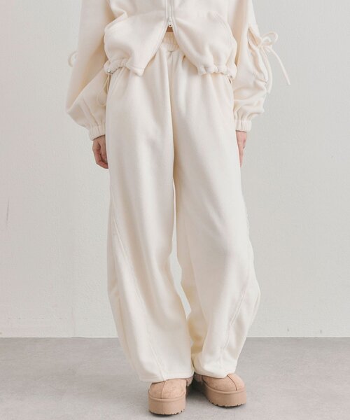 着心地らくちんでおしゃれ見えも叶うパンツ■デザイン・レースやきらきらのストーンなど映え要素が詰まったスウェットパンツ。・丸みのあるバレルレッグシルエットで、気になるラインを自然にカバーできます。・アイボリーはふわふわのフリース素材、トップグレー/ブラックは裏毛素材で前面にキラキラ付きです。・ウエストゴムなので楽な着心地です。■カラー・アイボリー/トップグレー/ブラックの3色展開■スタイリング・同色のフリースジップロゴジャケット(商品番号:1052060350)とセットアップで着るのがおすすめ。・コンパクトなトップスと合わせて、メリハリのある韓国コーデがおすすめ。・足元は厚底スニーカーやムートンで、今年らしいバランスが完成します。-----------------------------裏地:なし光沢感:なし透け感:なし伸縮性:ややあり-----------------------------model:161cm※着用、お取り扱いの際は、商品についている品質表示とアテンションタグを必ずご確認下さい。※ご覧のモニター環境や撮影環境により実際の商品と多少色味が異なって見える場合がございます。ご理解の程よろしくお願いいたします。■お気に入り登録のおすすめ【気になるアイテムを登録】ハートをクリックしてお気に入りに登録すると完売カラーの再入荷やラスト1点の通知、セールの通知を受けとることができます。【ブランドを登録】新商品や再入荷、セール通知など、いち早くブランドの情報を受けとることができます。