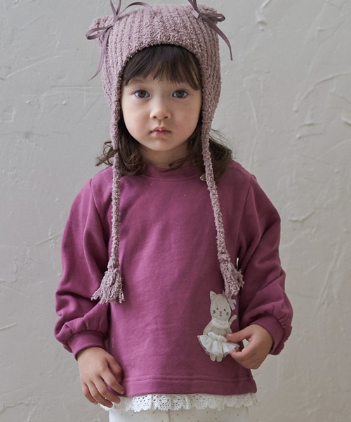アニマルモチーフのアップリケが可愛らしいトレーナーです。 レースを重ねたようなレイヤード風のデザインがおしゃれな一枚。 袖には膨らみを持たせており、動きやすさもアップしました。 内側にお名前を記入できるタグつき。 【透け感】透けない 【生地の厚さ】普通 【伸縮性】あり 【裏地】なし 【ポケット】なし