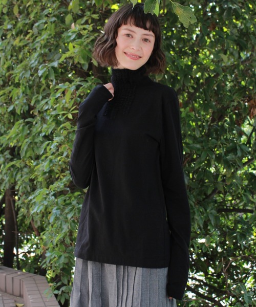 コンパクトソフトベア天竺を使用したタートルカットソー。 衿から身頃にかけて施したチュールフリルがインパクトのある1着に仕上げました。 スタイリングのプラスワンアイテムとしておすすめです。 ベーシックな杢グレー、ブラックと、差し色になるライトグリーンの3色展開です。 <素材について> 糸ふしが少なく、表面の毛羽が出にくいコンパクトコットンを使用しています。 ストレッチ性に優れています。 お手入れ:手洗い 店舗へお問い合わせの際は、下記の品番をお申し付け下さい。 [品番:31951754]