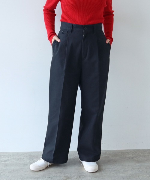 センタープレスの効いたメンズライクなツイルパンツ。クラシックで洗練された雰囲気を持ちながらも、チノパンのようなカジュアルさもあり、シーズンレスで気兼ねなく履いていただけます。糸に強い撚りをかけた毛羽の少ないツイル素材は耐久性に優れ、ハリがありながらもさらっとドライタッチな風合い。履き込む度に馴染み、天然素材ならではの経年変化をお楽しみいただけます。スマートなウエスト周りでありつつ、こなれた印象のやや太めのシルエット。フロントに入ったタックとコインポケットのディテールで、トップスの裾を入れて履いても着映えします。調節無しで履くとMサイズになるような設定ですが、背中側に入ったベルトホール付きのゴムで、それぞれ外側に絞りサイズ調整が可能。1.5cmの等間隔で狭くできるので、小柄な方にも挑戦していただきやすいアイテムです。ゴムを寄せてもバックシルエットに響かず、かっちりと履いていただけます。着回し力抜群のベーシックカラー展開。カジュアルなコーディネートはもちろん、ジャケットやシャツ、レザーシューズと合わせてちょっとしたお呼ばれの場にも。※PAR ICI定番アイテムのチノ後ろゴムパンツ(5001PT010251)よりもやわらかく薄手の生地で、表面の畝が目立ちます。--------------------透け感:なし裏地:なし伸縮性:なし光沢感:なしポケット:あり--------------------【素材の特性・お取り扱いの注意】・取り扱いの注意については取り扱い表示をよくご確認の上、着用をお願い致します。・直接日光や蛍光灯に長時間当てると変色する可能性がありますので、保管時はご注意下さい。また、色褪せや変色は経年変化によるものですのでご了承下さい。・(ネイビー)汗や雨等で濡れた場合、摩擦などにより色落ちし、他の衣料に移染する事がありますのでご注意下さい。※撮影画像は、光の当たり具合やモニターの環境により色味が違って見える場合があります。あらかじめご了承下さい。