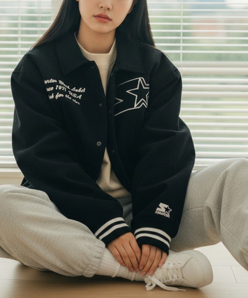 ストリートで人気の"STARTER"ヴィンテージ感漂う刺繍スタジャン-シルエット・デザイン-シーズンムード溢れるコーデュロイ素材を使用した中綿入りの襟付きスタジャン。袖口、裾口にはライン入りのリブが施され、スタイリッシュでスポーティな印象をプラス。ワッペンやサガラ刺繍、チェーンステッチをふんだんに取り入れ、ヴィンテージライクな風合いに存在感のある豪華なデザインです。ボリューム感のあるシルエットと保温性を備え、ストリートで映える存在感ある一着です。-ファブリック-柔らかくコーデュロイ特有の温かみのある質感とヴィンテージライクなクラシックな表情が魅力。キルト中綿仕様で防寒アウターとしても着用頂けます。■STARTER/スタータースターター(STARTER)は、アメリカのファッションブランド。スポーツウエアとポップカルチャーを融合した先駆けのブランドとして知られる。90年代には一流のプロアスリートやヒップホップ・映画・テレビ業界の著名人とコラボレートし、 世界初のクロスオーバーブランドとなる。★商品のお気に入り登録→【カートに入れる】右側のハートマークをクリック完売カラーの再入荷通知や、ラスト1点の通知、セールの通知も受け取ることができます。※店頭及び屋外での撮影画像は、光の当たり具合で色味が違って見える場合があります。またご覧いただきますモニターや使用環境により実際の商品と多少色味が異なって表示される場合がございます。 予めご了承をお願いいたします。