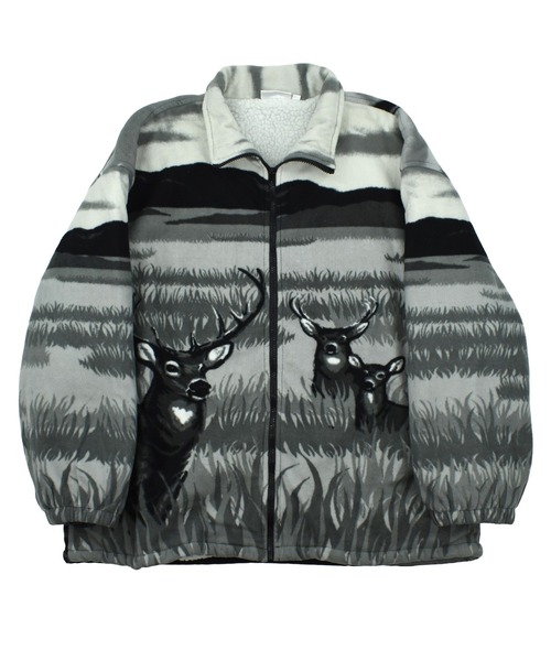 ※こちらはヴィンテージ商品となります。 下記のattentionをご確認の上、ご購入下さいますようお願いいたします。 --------------------------------------------------------- コンディションランク:A ■size タグ表記:XL 実寸:69cm/61cm/71cm/60cm(身幅/肩幅/着丈/袖丈[ゆき丈]) ■condition 着用感 ■point アウターとしてしっかり主役になるフリースジャケット。 モノトーン基調の風景に、鹿のグラフィックを大胆に配したデザインで、90年代らしいアウトドアアートの雰囲気が色濃く感じられる一着です。 毛足のあるフリース素材を用いたふんわりとした着心地に加えて、フロントはフルジップ仕様。 裏地にはボアフリースが採用されており、暖かさをしっかり確保してくれます。 モノクロームの配色がどこか映画のワンシーンのようで、デニムや無骨なワークパンツとも相性が良いバランスです。 存在感のある総柄ながら、落ち着いたトーンのため普段のスタイリングにも取り入れやすい一枚。 古着ならではのこなれた風合いを楽しめるコンディションです。 ■Vintage clothing store【LABORATORY®】 原宿に店舗を構える老舗Vintage Clothing Store。 バンドTシャツを中心に、独自のセレクトで個性的なアイテムを取り扱っています。 ZOZOTOWN STOREでは、現行のファッションにも馴染みやすく、古着特有の独特なムードやコンディションを気軽に楽しんでいただけるアイテムを提案いたします。 加工等では味わえない“リアル”な古着をお楽しみ下さい。 --------------------------------------------------------- ■attention ※こちらはヴィンテージ商品のため1点ものです。 交換・修理はいたしかねます。 ヴィンテージ商品につき、どちらの商品にも多少のシミ・ダメージ・使用感がございます。 このようなヴィンテージ商品の性質を十分ご理解いただいた上で、ご注文くださいますようお願いいたします。 商品状態につきましては詳細にお伝えするよう努めておりますが、細かな点の表記には限りがございます。 画像につきましても、実商品の色味に近しいものを掲載するよう心がけておりますが屋内での撮影のため、多少の誤差が生じる場合がございます。 また、ご覧のモニター環境により、画像の色味と多少異なる場合がございます。 どうかご理解いただきますようお願いいたします。 ※コンディションランク コンディションランクは当店の主観により判断しておりますので、あくまで一つの目安とお考えいただき、商品の写真や説明文と併せてご参照ください。 軽微なダメージや薄い汚れ、多少の色褪せなど、USEDの使用感の範囲内と判断したものは説明を省いている場合がございます。 S:未使用または新品の商品など A:使用感が少なく、かなり状態が良いなど B:使用感はあるが、傷や汚れが少ないなど C:使用感の他、傷や汚れが見られるなど D:かなり大きな傷みがある難ありなど --------------------------------------------------------- お気に入り登録のオススメ ▼商品のお気に入り登録▼ 再入荷、残り1点、セールなどの通知を受け取ることができます。 ▼ブランドのお気に入り登録▼ 新商品や再入荷、ショップのおすすめトピックスなど、いち早くブランドの情報を受け取ることができます。 ---------------------------------------------------------