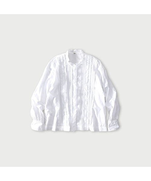 バチバチだけどすべすべさっぱりとしたハリがあり、しなやかさと柔らかさも兼ね備えたスーピマオーガニックのバチスト。細番手の糸をバチバチの高密度に織り上げ、ピーチ加工を施すことで、シルキーですべすべの肌触りが生まれました。スタンドカラーと前立てに、スカラップのコットンレースを立体的にあしらいました。女の子らしいブラウスです。