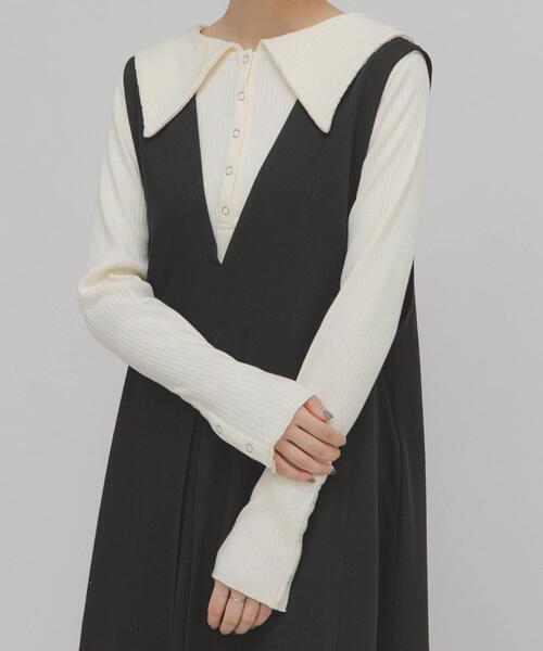 【着映え&女性らしさを兼ね備えたカットソー】 シンプルなリブを使用した、セーラーカラーデザインがアクセントになったトップス。袖はリングドット釦が付いた開き仕様になったブラウスのようなディテールもポイントです。程よくフィットし、着心地が良く、女性らしさが叶う1着です。 【2025 Autumn/Winter】【25AW】 総重量 : 約430g ※商品画像は、光の当たり具合やパソコンなどの閲覧環境により、実際の色味と異なって見える場合がございます。予めご了承ください。 ※商品の色味の目安は、商品単体の画像をご参照ください。 ▼お気に入り登録のおすすめ▼ お気に入り登録された商品は、マイページにて現在の価格情報や在庫状況の確認が可能です。 お買い物リストの管理にぜひご利用ください。 素材感 透け感 : ややあり(IVORY) 伸縮性 : あり 裏地 : なし 光沢 : なし ポケット : なし one
