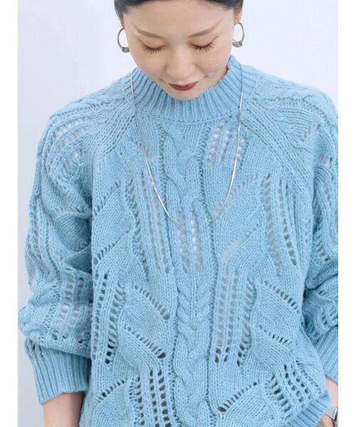 繊細な透かし編みとケーブル柄が特徴のニットプルオーバー。ふんわりとした軽やかな風合いで、女性らしい抜け感を演出します。シャツを重ねたレイヤードや、スカート合わせで上品に仕上げても◎デニムやワイドパンツでカジュアルダウンするのもおすすめです。※商品画像は、撮影環境やお客様のご利用のPC・スマートフォンのモニター環境などにより実物と色味に差異がある場合がございます。★《お気に入り登録》でお得な情報をGET★① 商品ページ内のハートマークをクリック!② 以下通知が受け取れます!「再入荷」「ラスト1点」「特別セール」etc..\ブランド、ショップのお気に入りも是非!/