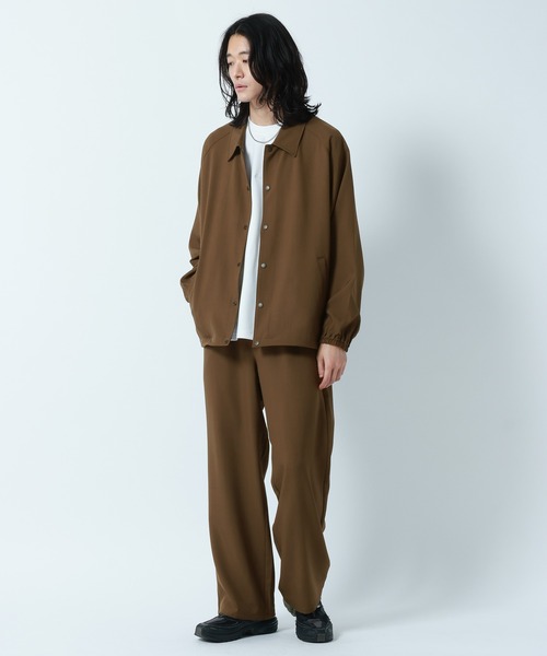 上下セットのお得なセットアップ。 ーーー ■ポイント <ジャケット> ベーシックなコーチジャケット。 生地感にハリや揺れ感を持たせることで上品さのある一着に仕上げました。 肩幅や身幅を広くとることで、トレンド感のあるオーバーサイズシルエットに。 お持ちのトップスの上からサラッと羽織るだけでかっこよく決まります。 <ボトムス> 全体的にルーズなシルエットに仕上げたワイドパンツ。 ウエストはゴム/紐で調節可能なイージー仕様で、快適な穿き心地を実現。 揺れ感のある素材で仕上げ、ドレープ感が上品さを演出。 ■素材 サラッとした肌触りのいい素材で仕上げました。 程よいハリ感や光沢感が、清潔感のあるディテールを実現。 シワにもなりづらくイージーケアなのも嬉しいポイントです。 ====== ■参考サイズ M:~175cm L:175cm~ ====== ーーー