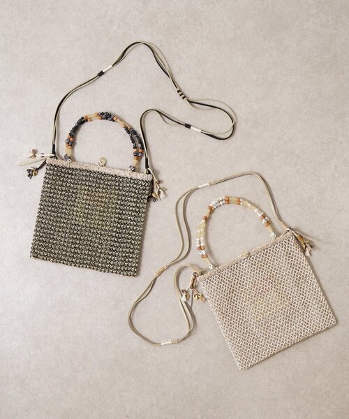 ■アイテム繊細なビーズ刺繍が全面に施された、職人の手仕事が光るハンドバッグ。本体にはガラスビーズを贅沢に使用、持ち手部分にはクラフトビーズをあしらった唯一無二のデザインになっています。取り外し可能なレザーのストラップ付きで、手持ちはもちろん、肩掛けも可能。アクセサリー感覚で身に着けていただくのも◎。内側にはメッシュ素材の裏地とポケットを備え、見た目の美しさだけでなく実用性も兼ね備えています。マチのないすっきりしたフォルムでコンパクトなので、アクセサリー感覚で持つのもおすすめ。インドやインドネシア地方の伝統技法を活かしたハンドメイドのビーズバッグです。《IMAYIN/イマイン/イマイエン》スペイン人のデザイナーDavidが妻と二人で旅したインドやパキスタンで、ハンドメイド刺繍が施されたアンティーク布に感動し、伝統をもとにより進化させたデザインバッグを作り始め、1998年に立ち上げたバッグブランド。Imayin(イマイン/イマイエン)は「イマジネーション」の「IMA」と「YIN-YANG」の女性形「YIN」を掛け合わせた言葉で、エスニックテイストをよりエレガントに進化させ個性的なブランドです。■素材・仕様素材:ポリネットキャンバス、ガラスビーズ裏地:ナイロンメッシュストラップ:レザー----------------------------------外ポケット:なし内ポケット:オープンポケット1つショルダーストラップ:取り外し可・長さ調整不可間口:オープン仕様裏地:あり(メッシュ素材)光沢:あり透け感:あり付属品:間口に1か所留め具あり----------------------------------《商品について》・ビーズ・刺繍部分は、引っ掛かりやすくなっていますので、着用や着脱の際、他の衣類への引っ掛けには充分ご注意ください。・インポート商品の為、国内製品と比べますと、ほつれ、糸の始末、タグなし、しわ、ビーズやボタンのしつけなど、多少つくりが甘い部分がございます。ご了承ください。・サンプルの為、素材情報については企画段階の情報を記載しております。公的機関での試験データ結果を受け、量産にあたり混率の変更が発生する場合がございますので、ご了承くださいませ。・サンプルでの撮影、計測をしております。商品の仕様が一部変更になる場合がございます。・撮影サンプル品はブランドタグがついておりません。製品にはタグがつきますので、製品の表に縫い糸が見える場合がございます。・工場の生産の都合上、納期が変更になる場合がございます。検品や輸送の関係で、発送日が前後しますのでご了承ください。また、入荷状況により、お客様への発送が店頭販売より遅れる場合もございます。・店頭に陳列していた商品も含まれる場合がございます。《商品画像について》ご覧頂いている商品の写真につきましては、できるだけ実物の色に近くなるように努めておりますが お使いの環境(モニター、ブラウザ等)の違いにより、色の見え方が実物と若干異なる場合がございます。 予めご了承ください。《商品・ブランドのお気に入り登録》【ハートをタップ】登録カラーの商品の「残りわずか」「再入荷」「値下げ」通知を受け取ることができます。【各ショップアプリにてブランドフォロー】 新商品などの入荷情報、最新のニュースやお得な情報を受け取ることができます。