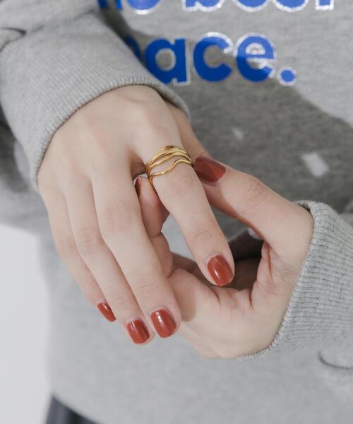 【指にしなやかに馴染むウェーブリング】●重ね付け風に見えるデザインリング●指をきれいに見せる、しなやかなウェーブ●肌に優しく錆びにくいサージカルステンレス素材1本のメタルラインが、指にしなやかに巻き付くようなリングです。1本で程よいボリュームがあり、手元のアクセントになります。腐食に強く錆びにくいサージカルステンレスを採用した、金属アレルギーにも対応したアクセサリーです。【2025 Autumn/Winter】【25AW】【サージカルステンレスとは・・】・通常のステンレス材よりも、より腐食に強く錆びにくい。・医療器具にも使用されており、金属アレルギーに対応した素材。・お風呂などの水に触れるシーンで付けっぱなしにしても、錆びたり変色したりしにくい。※アレルギーの原因はさまざまです。すべての方に起きないことをお約束するものではありませんので、予めご了承くださいませ。また、症状が出た場合は直ちに使用をお控えください。※アレルギー体質の方や体調が低下している方など、かぶれることがありますので十分にご注意ください。※サージカルステンレスは、腐食に強く錆びにくい特徴がございますが、製品状態を永久保証するものではございません。使用状況によって劣化は異なりますので、ご了承ください。※その他お取り扱いに関しましては、商品に付属のアテンションタグをご覧ください。サイズ : 13号総重量 : 約2g※商品画像は、光の当たり具合やパソコンなどの閲覧環境により、実際の色味と異なって見える場合がございます。予めご了承ください。※商品の色味の目安は、商品単体の画像をご参照ください。▼お気に入り登録のおすすめ▼お気に入り登録商品は、マイページにて現在の価格情報や在庫状況の確認が可能です。お買い物リストの管理にぜひご利用下さい。-