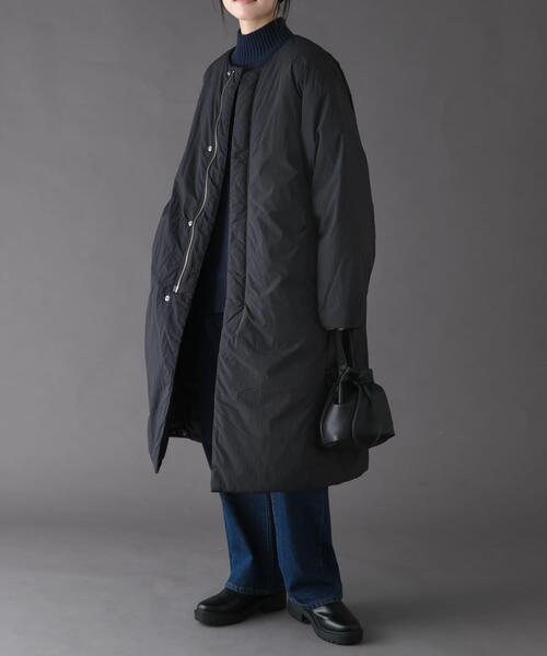 スタイリングを選ばないノーカラーデザインの中綿コートをご用意しました。 中綿は通気性に優れており湿度に強く、蓄熱保温性が高いSORONAという機能性中綿を使用し、見た目以上に軽い着心地も魅力です。 すっきりとしたノーカラーはタートルネックやハイネックとも合わせやすく、ミドル丈を採用。 裾にスピンドルを通しているので絞るとシルエットを変えていただけます。 コート感覚で着用いただける一着は暖かくこなれ感も叶います。 【FORK&SPOON(フォークアンドスプーン)】 DOORSのプライベートレーベル。その名前のとおり「毎日食事を摂るように、毎日大切に着てほしい」という思いが込められています。毎日着たくなる様な心地のよいベーシックスタイルは、世代を超えてお楽しみいただけます。 【2025 Autumn/Winter】【25AW】 ※商品の特性上、縫い目部分からダウンやフェザー、中綿などの詰め物が出ることがありますので、ご注意ください。 ※ドライクリーニング後、溶剤が残った状態で着用すると、皮膚を刺激し炎症の原因になることがあります。溶剤の臭いがする状態で、着用しないでください。 ※その他お取り扱いに関しましては、商品に付属のアテンションタグをご覧ください。 総重量 : 約585g ※商品画像は、光の当たり具合やパソコンなどの閲覧環境により、実際の色味と異なって見える場合がございます。予めご了承ください。 ※商品の色味の目安は、商品単体の画像をご参照ください。 ▼お気に入り登録のおすすめ▼ お気に入り登録された商品は、マイページにて現在の価格情報や在庫状況の確認が可能です。 お買い物リストの管理にぜひご利用ください。 素材感 透け感 : なし 伸縮性 : なし 裏地 : あり 光沢 : なし ポケット : あり 1