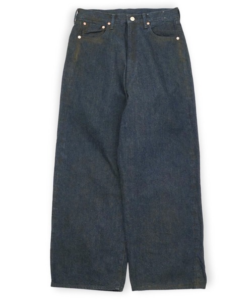 YOKO SAKAMOTO ユニセックスブランドとして展開。 ブランドコンセプトはシーズン毎に敢えて設けず、「日常着」として常に身につけたくなるプロダクトを提案。また、女性デザイナーが作り出すメンズウェアという独自の空気感にもこだわったモノづくりを行っている。 ------------------------------------------------------ YS定番のデニムに、天然染めを施したスペシャルなシリーズ。 京都の歴史ある染め工場にて、熟練の職人が一点一点手染めでガーメントダイを施したスペシャルシリーズ。 着用を重ねる度、唯一無二な経年変化がお楽しみ頂けます。 YELLOW OCHRE : 黄土 + 墨 バギーフィットのスタンダードな 5ポケットパンツ。 ウエストから裾までズドンと太いバギーシルエットが特徴。 どんな服装、スタイルにも合わせ易く、非常に汎用性の高いパンツです。 タックボタンは鉄製の無塗装。リベットは鉄製の銅メッキ。 両者共に徐々に錆びて行く為、独特な風合いとルックスに育ちます。 天然染めらしい唯一無二の経年変化が楽しめ、着用を 重ね洗い込む度に、自分だけの一着に育ちます。