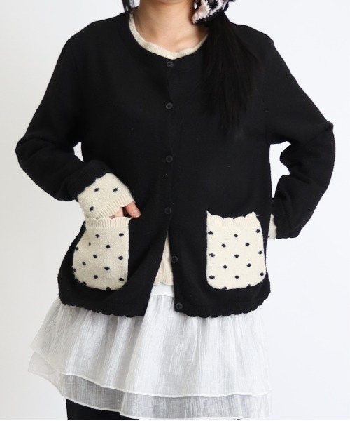【レトロガーリー】ドット柄フリルポケットカーディガン 着るだけで気分が上がるフリル&ドット愛らしさ満点! フリルポケット: 左右のポケットに施された立体的なフリルと、小さなドット柄の組み合わせが、とびきりキュートなアクセントに。 バイカラーで引き締め: 本体はシックなブラック、襟元・ポケット・袖口は優しいアイボリーのバイカラーデザイン。 甘すぎず、大人も着やすいバランスに仕上げました。 手元まで可愛く: 袖口にもポケットと同じドット柄とフリルを配置。 アウターを羽織った際にも、袖から覗くディテールが手元を華やかに演出します。 着回し力抜群のコンパクトシルエットすっきり見えるクルーネック: 首元をきれいに見せるクルーネックで、ブラウスやハイネックインナーとのレイヤードももたつかず楽しめます。 程よい丈感: ボトムスを選ばないジャスト丈で、スカートにもパンツにもバランス良く合わせやすいのが魅力。 ワンピースの上に羽織るスタイルもおすすめです。 あたたかみのあるニット素材で、秋冬から春先までロングシーズン活躍します。 🏷️ スタイリング フレンチガーリー: ハイネックブラウスとフレアスカートに合わせ、ベレー帽やパンプスをプラスして、とことんレトロで可愛らしいスタイルに。 カジュアルダウン: シンプルなTシャツとデニムにさらりと羽織って、足元はローファーやバレエシューズで上品な抜け感をプラス。 ワンピの主役に: 無地のシンプルなワンピースの上に羽織れば、ドット柄とフリルが際立ち、コーディネートの主役になります。 【 Vini / ヴィニ 】 韓国発の【Vini】は、アパレル・雑貨・アクセサリーが揃うトータルセレクトショップ。 シンプルに、そして気軽に“今の自分”をアップデートできるのが【Vini】のコンセプト。 韓国の最新カルチャーを取り入れた、“韓国っぽカワイイ”アイテムを豊富にラインナップ。 ファッションも雑貨も、今っぽくて、ちょっと先を行くかわいさが見つかる。 Viniで毎日がもっと楽しく、もっとカワイくなる。 【 Attention 】 ※商品画像は撮影時の光や角度、お使いのモニター環境により実物の色味と異なって見える場合がございます。 ※サイト上のカラー・サイズ表記と商品タグのカラー名・サイズ名が異なる場合がございます。 ※生産時期により、色・素材・サイズ感など多少異なる場合がございます。 ※商品によっては、繊維や染料のにおいが感じられる場合がございます。 数日のご使用や陰干しなどで匂いはほとんど感じられなくなりますのでお試しください。 ※通販の特性上、到着時には畳みシワがついている場合がございます。 【Information 】 お気に入り登録がオススメ! ▼商品のお気に入り登録 完売カラーの再入荷通知や、ラスト1点、セールの通知をお知らせ致します。 ▼ブランドお気に入り登録 新商品や再入荷など、いち早くブランドの情報を受け取ることができます。