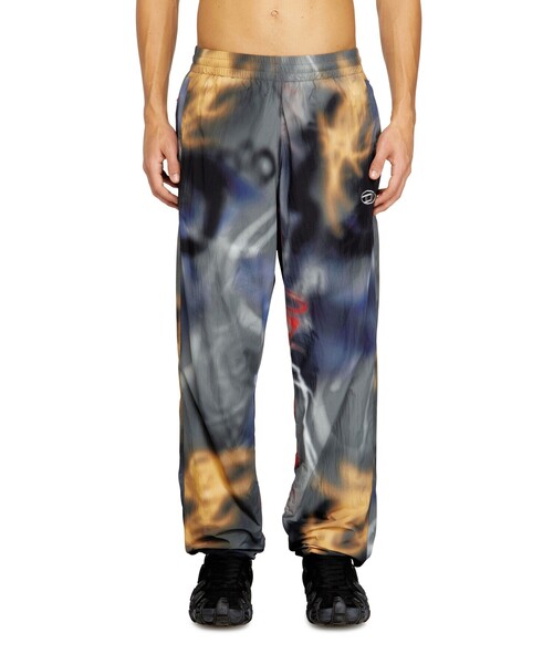 品番:A211000PGBWスプレーで描いたようなアートワークが印象的な総柄のフルレングスパンツ「P-ARELION」。シャカシャカと軽いナイロン素材で、裏地には肌当たりの良いコットンポリエステル素材が使われています。ウエストと裾に伸縮性があるため、着用したときのホールド感も良好。左レッグのオーバルDロゴやバックポケットのフラッグラベル、タイニーロゴのジッパープラーなど、各所にディーゼルのエッセンスが落とし込まれたクールな一本です。