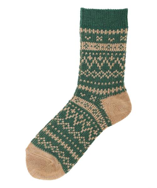 あたたかみのあるジャガード編みが、足元に優しいニュアンスを添えるソックス。適度な厚みでフィット感が良く、スニーカーからブーツまで幅広いスタイルに合わせやすい一足です。デイリー使いはもちろん、リラックスタイムにもおすすめの万能アイテム。【その他採寸】F 全長:16cm