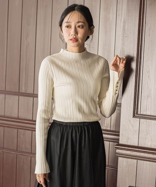 ドロワットで大人気のソリストヒートリブニットが新色カラーを加えて今年も登場!高すぎない絶妙なハイネックが好評のポイント。ランダムなピッチのリブ編地で、ベーシックでもおしゃれに着こなせます。吸湿発熱素材のあったか機能素材を使用した、衣服内の湿度を保温性に変化させる機能で、柔らかくてもっちりとした肌触りの良い素材です。伸縮性があり、ぴたっとし過ぎないシルエットで窮屈にならず楽に着用していただけます。コートやワンピースなどのインナーとしても着回し易く、持っておくと便利な必ず使える一枚です。袖のメタル釦がコーディネートのさりげないポイントに。----------------------------------------------------------------洗濯方法家庭洗濯:液温は40℃を限度とし、手洗いができる。自然乾燥:日蔭の平干しがよい。アイロン:底面温度120℃を限度としてアイロン仕上げができる。ドライクリーニング:石油系溶剤による弱いドライクリーニングができる。----------------------------------------------------------------※画像の商品はサンプルとなりますので実際の商品と仕様、加工、サイズが若干異なる場合がございます。※お客様のモニター環境により実際のお色と多少異なる場合がございます。※撮影状況や光の当たり具合により、色合いが異なって見える場合がございます。※商品タグに記載されたサイズはヌードサイズです。実際の商品のサイズは商品情報の実寸をご確認ください。--------------------------------------------------------------------▼商品のお気に入り登録ハートマークをクリックし、お好きなカラーを選んでお気に入りに登録完売カラーの再入荷通知や、ラスト1点の通知、セールの通知も受け取ることができます。▼ブランドのお気に入り登録新商品や再入荷等、いち早くブランドのお得な情報を受け取ることができます。 --------------------------------------------------------------------