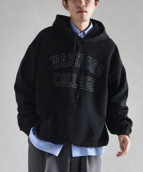 *ヴィンテージ感漂う、こなれた大人のカレッジパーカー「肌触りと防寒を両立」表地は柔らかく伸びのあるスウェット生地を使用し、裏側には、ダンボールの断面のように間に空気の層を作るふくらみ素材を使用。空気を含むことで「軽さ」と「暖かさ」が両立し、着心地もふわっと心地よく仕上がっています。リブは程よい伸縮性があり着心地良好、洗い込まれたようなスノーウォッシュ加工が柔らかな表情を作ります。「ヴィンテージ風で着るだけで決まる」配色のカレッジロゴがアクセントになったヴィンテージ風のデザイン。フードは程よいボリュームで首元に安心感を与え、フロントのカンガルーポケットは実用性も確保。ゆったりとしたドロップショルダーとワイドめの身幅でリラックスした着こなしが可能になり、フェード加工がこなれた印象をプラスします。「様々なコーデに対応する汎用性」シャツの襟を覗かせたきれいめレイヤードで、スラックスと合わせれば大人の休日コーデに。デニムやチノパンでカジュアルダウンしてもバランス良く決まります。さらに、タートルネックニットを中に重ねれば防寒性を保ちながら上品な印象に。オンオフ問わずデイリーユースで活躍する、一枚持っておきたい万能パーカーです。透け感[なし]生地の厚さ[普通]光沢感[なし]伸縮性[ややあり]裏地[なし]ポケット[あり]※モデル着用画像は、光の当たり具合で色味が違って見える場合がございます。※お使いのモニター環境によって商品の色味が違って見える場合がございます。 ̄ ̄ ̄ ̄ ̄ ̄ ̄ ̄ ̄ ̄ ̄ ̄ ̄ ̄ ̄ ̄ ̄ ̄ ̄▼商品のお気に入り登録がおすすめです ▼商品ページ内のハートマークをクリック。完売時の再入荷や、最後の1点の通知、最後の1点など、お得なお値下げ情報を受けとる事ができます。【お知らせ】ページでも通知が確認できます。 ̄ ̄ ̄ ̄ ̄ ̄ ̄ ̄ ̄ ̄ ̄ ̄ ̄ ̄ ̄ ̄ ̄ ̄ ̄