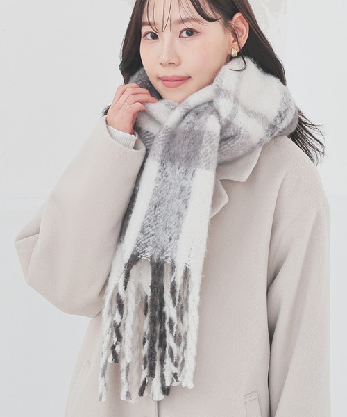 冬のマストアイテム!【デザイン】アクセントになる、存在感抜群の太フリンジ。合わせやすい優しげなチェック柄のバリエーション。【素材・機能】見た目もあたたかな、ボリュームたっぷりの両面起毛素材。【スタイル】デイリーにも、通学や通勤スタイルにもおすすめ。寒さ対策としてはもちろん、コーデのアクセントにも大活躍♪※素材の特性上、引っかかりやすいので、ご注意ください。※湿度・摩擦により多少色落ちする可能性があります。品番:281-133-9469