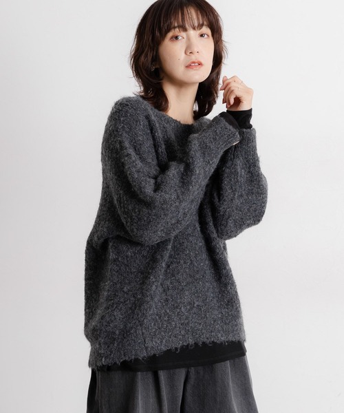 様々なスタイリングを楽しめるミニマムデザインソフトで優しい風合いのニットプルオーバーーーー【素材】ウールミックスブークレ素材を使用。モコモコとした表面感と、ソフトで優しい風合いが特徴です。【デザイン】5ゲージで作成されたニットプルオーバー。素材を活かしたミニマムデザインで、ボトムスを選ばず着こなしの幅が広がる一枚です。複雑に混じり合ったメランジカラーが上品な印象になり、高見え効果も◎トップス ニット ブークレ ーーー【スタイリング】さらっと一枚ではもちろん、シャツやブラウスをインにレイヤードしても素敵です。シャツワンピースの上に重ねた着こなしもおすすめ。