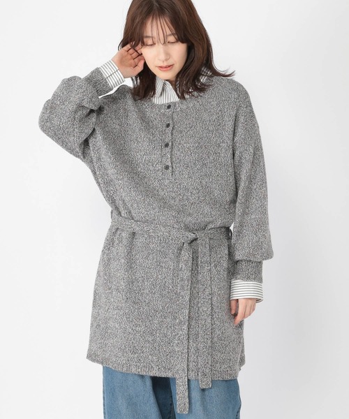 カラフルなネップがポイント シルエットの変化も楽しめるニットチュニック ーーー 【素材】 細やかでカラフルなネップを編み込んでいます。 ちくちくせず着心地が良いのも特徴です。 【デザイン】 細やかでカラフルなネップを編み込んだニットチュニック。 カーデとしてもプルオーバーとしても着こなせる、嬉しいダブルフロント仕様です。 ゆったりとしたワイドシルエットに共布のベルトが付いているのでシルエットの変化もお楽しみいただけます。 トップス ニット ワンピ ワンピース ニットワンピ 2WAY ーーー 【スタイリング】 ストレートパンツやテーパードパンツと合わせた大人な着こなしがおすすめ。 デニムパンツやチノパンなどカジュアルなパンツとも好相性です。