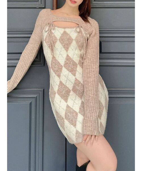 アーガイル柄と胸元のデザインがポイントのミニワンピ ▽デザイン▽ アーガイル柄がかわいらしいニットワンピ。 胸元があいたデザインとリボンで女性らしい雰囲気に。 ボディにフィットするコンパクトなシルエットでスタイルアップ効果も◎ ▽カラー▽ グレー、黒、ベージュの3色展開。 ▽スタイリング▽ 1枚で仕上がるニットワンピです。 ロングブーツを合わせたスタイリングがおすすめ◎ デイリー使いだけでなくデートや女子会にもピッタリのアイテムです。