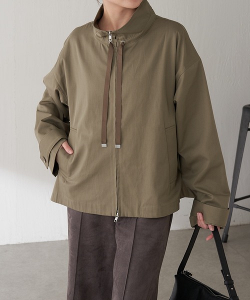こなれ感のある大人カジュアルコーデが完成するきれい見えブルゾン【POINT】・程よいツヤ感のあるツイル素材を使用したスタンドカラーブルゾン。・シンプルなデザインながら、ポイントにメタルパーツを使用し、女性らしい雰囲気に。・背中部分にゆとりを持たせて、今年らしいポンチョ風のシルエットに仕上げました。・袖口はトレンチコートなどによく使われるタブディティールにしていて、きちんと感を演出◎・撥水機能のある素材を使用していて、デザインだけでなく機能面にも優れた春アウターです。【おすすめコーディネート】ホワイト:春のトレンドのホワイトをアウターで取り入れるのもおすすめです。デニムでもきれいめスカートにも合わせやすいシルエットです。【おすすめのスタイリングアイテム】・サイドラメダンボールタイトスカート CLZ1061101A0002・フォトロゴロンT CLZ1061106A0001【素材】表地:綿50%、ポリエステル50%裏地:ポリエステル100%透け感:なし裏地:なし伸縮性:なし光沢感:なしおすすめ着用時期:秋、春洗濯:ドライクリーニング【気になる商品は「お気に入り」登録を】 ハートマークをクリックし、お好きなカラーを選んでお気に入りに登録すると入荷情報や残り1点の通知、完売カラーの再入荷、セール情報などを受け取ることができます。※撮影場所やお使いのモニター環境により若干お色味が異なる場合がございます。特にロケの撮影では明るく見える傾向にございます。詳細撮影画像で色味をお確かめくださいます様お願いいたします。※サンプルで撮影をしております。若干の仕様が変更になる場合がございますので予めご了承の上ご注文くださいますようお願いいたします。※サンプルでの採寸のためあくまで目安となります。予めご了承ください。≪返品・交換について≫・着用後、洗濯後の返品・交換は致しかねます。・商品到着後、着用前に商品状態のご確認をお願い致します。
