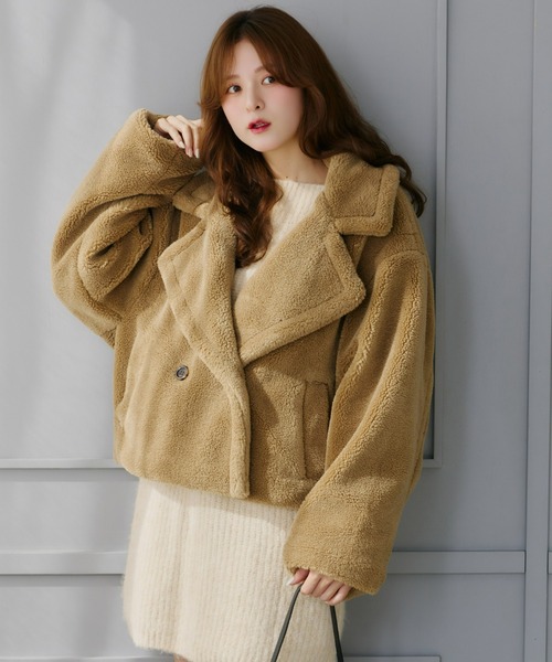 ふんわりと包み込む、冬のショートボアコートテーラードの端正なシルエットに、ボアの柔らかさを掛け合わせたショートコート。きちんと感がありながらもふんわりとした質感がやさしい印象を与え、冬の装いにぬくもりを添えます。表地はポリエステル100%で仕立てられた軽やかなボア素材。もこもことした風合いながらも軽く、程よい厚みで暖かさをキープします。裏地もポリエステル100%で滑りが良く、ニットの上からもストレスなく羽織れるのが嬉しいポイント。コンパクトな丈感がバランス良く、ボリュームのあるボトムとも好相性。デニムと合わせれば抜け感のあるカジュアルスタイルに、スカートやワンピースと合わせれば上品でフェミニンな雰囲気に仕上がります。カラーはアイボリー、ベージュ、ブラウンの3色展開。どのカラーもやわらかなトーンで、冬のコーディネートを優しく包み込む一枚です。■公式 Instagram【@olu.myself】新作やキャンペーン情報などを発信していますˎˊ˗ぜひお買い物の参考にしてください。・濃色品は、着用の際の摩擦により、他の衣料や下着、合皮などのバッグ、シリコン製の携帯ケース等に色移りする可能性がありますので、淡色との組み合わせにはご注意下さい。・移染する恐れがありますので、 他の物と分けてクリーニングして下さい。・素材の特性上、雨や水に濡れた場合、クリーニング後は他の製品に移染したり、多少縮む恐れがあります。クリーニング後は、形を整えて干して下さい。・強い日光(または照明)を長時間受けますと変色の恐れがありますので、着用および保管の際はご注意下さい。・長時間他の衣料と接触した状態で放置すると、接触していた衣料品に移染する可能性がありますので、保管には十分にご注意下さい。・濃色のこの製品と薄い色(特に白)のバッグなどとの組み合わせにもご注意下さい。